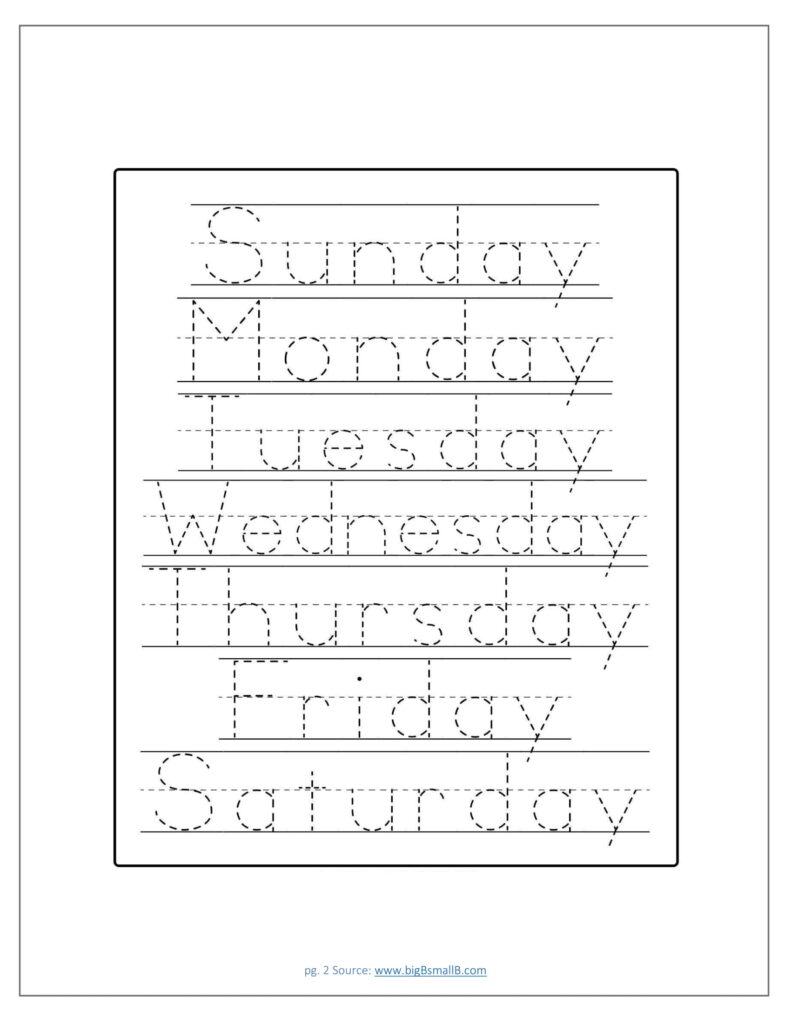 Below are worksheets on the days of the week, with emphasis on ordering days and tracing words.